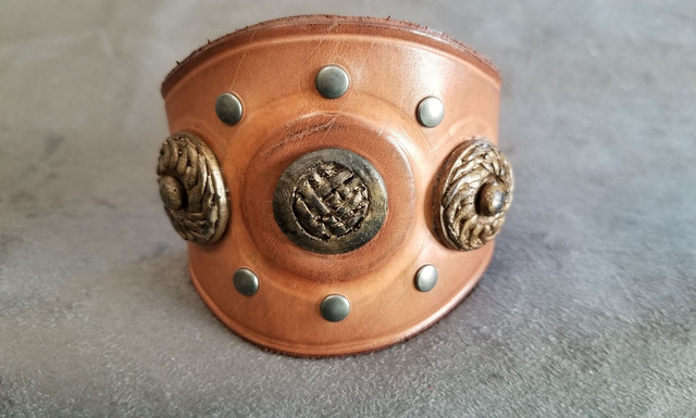 Bracelet en cuir tannage végétale fait main français, pour poignet, teint à la main et repoussage cuir (9)