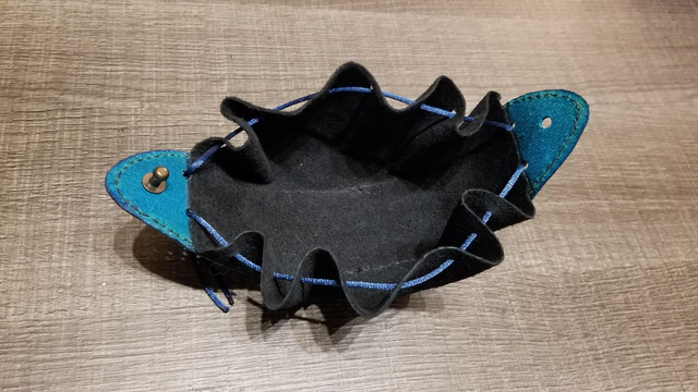 Bourse en cuir, couture lin poissé, fait main, pour porter des dès ou de la monnaie, pour adultes et enfants, unisexe. Bleu nuit avec motif doré.